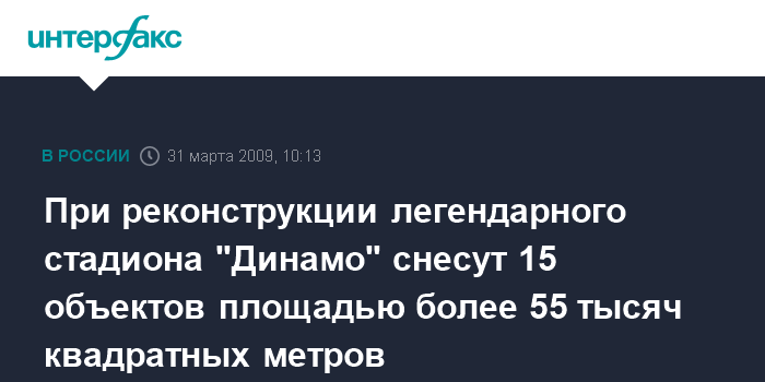 При реконструкции легендарного стадиона "Динамо" снесут 15 объектов площадью более 55 тысяч квадратных метров