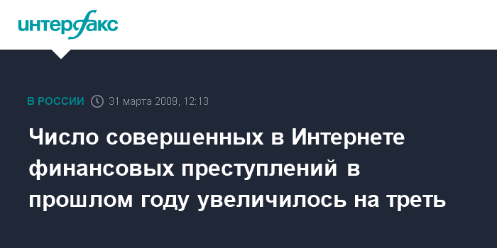 Москва. 31 марта. INTERFAX.RU - Число сообщений о финансовых преступлениях, совершенных с использованием Интернета, подскочило на 33% в 2008 году, утверждают эксперты Internet Crime Complaint Center (ICCC), занимающегося расследованием случаев онлайнового мошенничества, пишет издание MarketWatch.