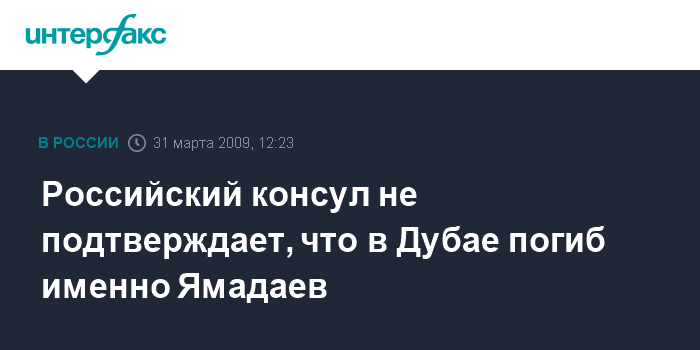 Москва. 31 марта. INTERFAX.RU - Гражданин России, на которого было совершено покушение в Дубаи, мертв, однако нет подтверждения о том, что это Сулим Ямадаев, заявил генконсул РФ в Дубай Сергей Краногор.