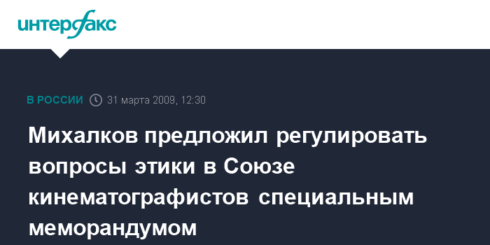 Москва. 31 марта. INTERFAX.RU - Избранный председателем Союза кинематографистов (СК) России Никита Михалков предлагает ввести в организации меморандум по этике.