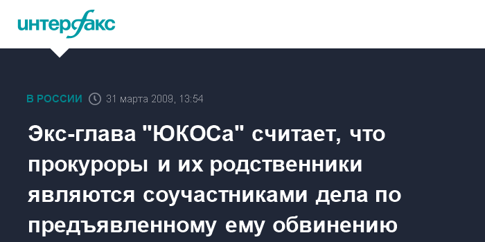 Экс-глава "ЮКОСа" считает, что прокуроры и их родственники являются соучастниками дела по предъявленному ему обвинению