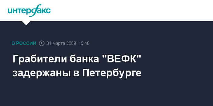 Грабители банка "ВЕФК" задержаны в Петербурге