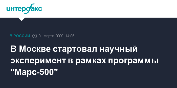 Москва. 31 марта. INTERFAX.RU - Предварительный 105-суточный эксперимент по моделированию полета на Красную планету в рамках программы "Марс-500" стартовал в Институте медико-биологических проблем (ИМБП) в Москве. "Экипаж "Марс-105" готов начать эксперимент", - сказал командир добровольцев, отобранных для участия в эксперименте Сергей Рязанский.