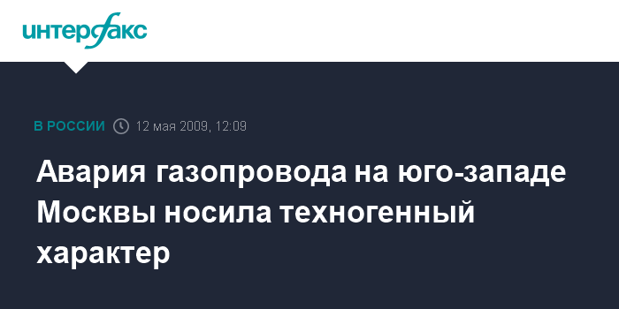 Москва. 12 мая. INTERFAX.RU – Мэр Москвы Юрий Лужков заявляет, что авария газопровода на юго-западе Москвы носила техногенный характер.