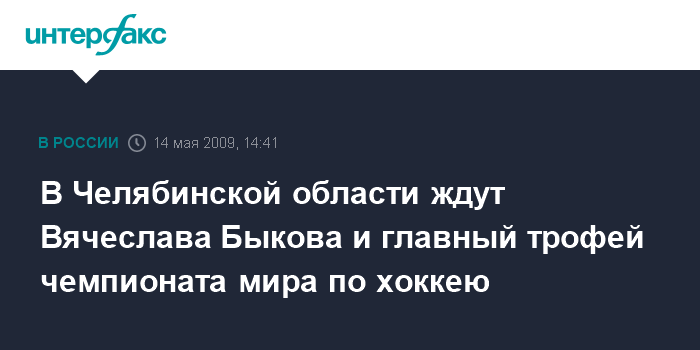 Москва. 14 мая. INTERFAX.RU - Губернатор Челябинской области Петр Сумин пригласил главного тренера сборной России по хоккею Вячеслава Быкова посетить регион и привезти Кубок мирового первенства.