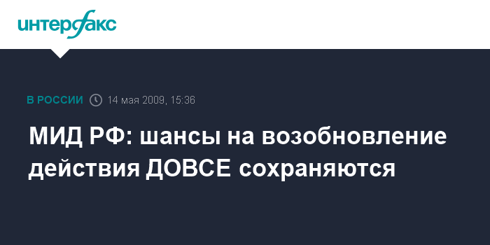 Москва. 14 мая. INTERFAX.RU - В Москве считают, что еще существуют шансы на возобновление действия Договора об обычных вооруженных силах в Европе (ДОВСЕ), заявил официальный представитель МИД РФ Андрей Нестеренко.