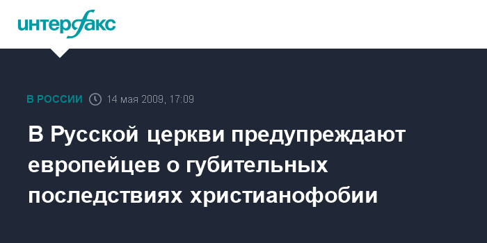 Он призвал "не только христиан, но и всех носителей традиционной европейской культуры, христианством сформированной, крепко задуматься о своем культурном выживании в современном глобализирующемся мире и спросить себя, почему столь многие из них не испытывают тревоги за настоящее и будущее своей культуры, своих религиозных традиций". "Мы должны ясно осознать, что в проявлениях христианофобии нельзя винить ни мусульман, ни иммигрантов, ни так называемое "столкновение цивилизаций". В этом виноваты прежде всего и по преимуществу наследники европейской христианской культуры - мы сами", - считает представитель Московского патриархата.