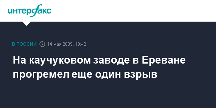 Ереван. 14 мая. INTERFAX.RU - На каучуковом заводе "Наирит" в Ереване только что произошел еще один взрыв, передает корреспондент "Интерфакса" с места событий.