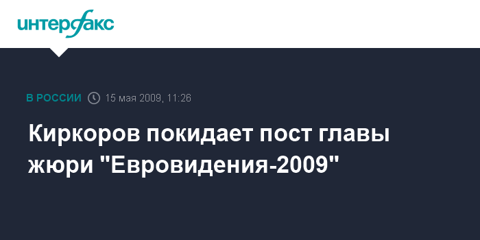 Москва. 15 мая. INTERFAX.RU - Певец Филипп Киркоров снял с себя обязанности председателя жюри музыкального конкурса "Евровидение-2009", его место займет продюсер Игорь Матвиенко.