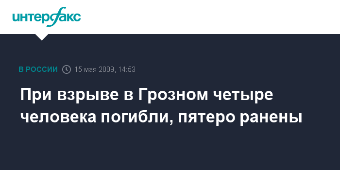 Москва. 15 мая. INTERFAX.RU - В результате совершенного в пятницу на улице Исаева в Грозном взрыва погибли четыре человека, включая двоих сотрудников милиции, сообщили в управлении СКП по Чечне.