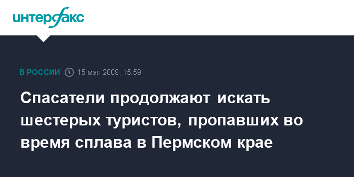 Как сообщили агентству "Интерфакс-Поволжье" в пресс-службе МЧС России по Пермскому краю, пропавшими по-прежнему числятся шестеро туристов, среди них одна девушка. Пятеро - жители Перми, один пропавший - житель Свердловской области.
