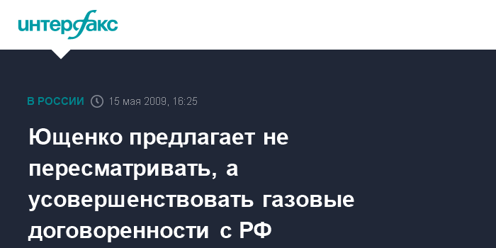 Москва. 15 мая. INTERFAX.RU - Президент Украины Виктор Ющенко не настаивает на пересмотре украинско-российских газовых договоренностей, однако считает, что если есть необходимость, их надо усовершенствовать.