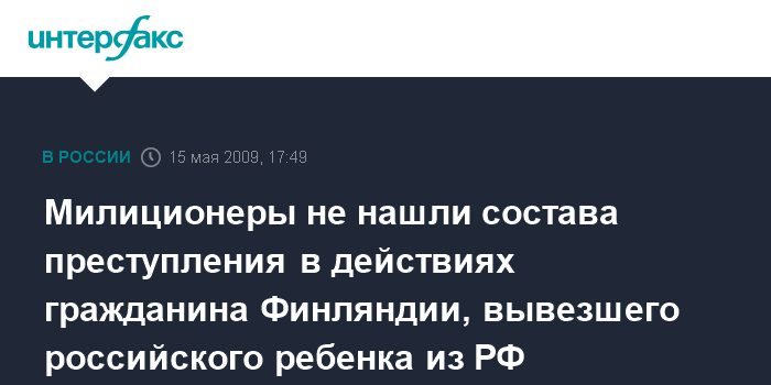 Милиционеры не нашли состава преступления в действиях гражданина Финляндии, вывезшего российского ребенка из РФ