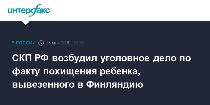 СКП РФ возбудил уголовное дело по факту похищения ребенка, вывезенного в Финляндию