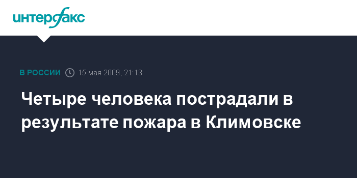 Москва. 15 мая. INTERFAX.RU - В результате пожара в городе Климовск (Подольский район Московской области), по предварительным данным, пострадали двое мужчин и две женщины, сообщил "Интерфаксу" источник в правоохранительных органах региона.