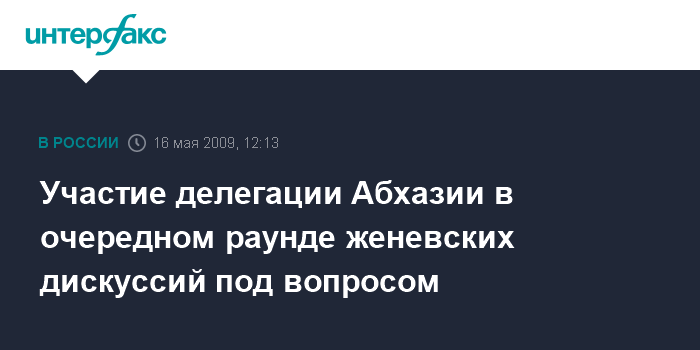 Москва. 16 мая. INTERFAX.RU - Вопрос участия абхазской делегации в очередном раунде международных дискуссий в Женеве по безопасности в Закавказье, запланированные на 18-19 мая, остается пока открытым.