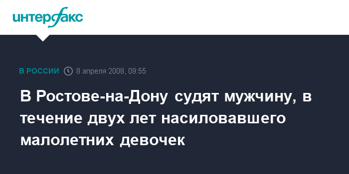 Ростов-на-Дону. 8 апреля. INTERFAX.RU - В Ворошиловском районном суде Ростова-на-Дону рассматривается дело в отношении местного жителя, обвиняемого в изнасиловании малолетних.