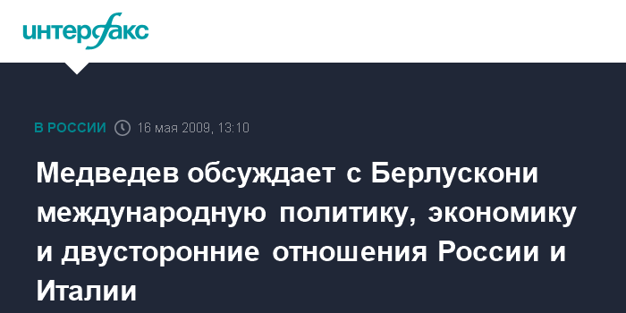 Медведев обсуждает с Берлускони международную политику, экономику и двусторонние отношения России и Италии