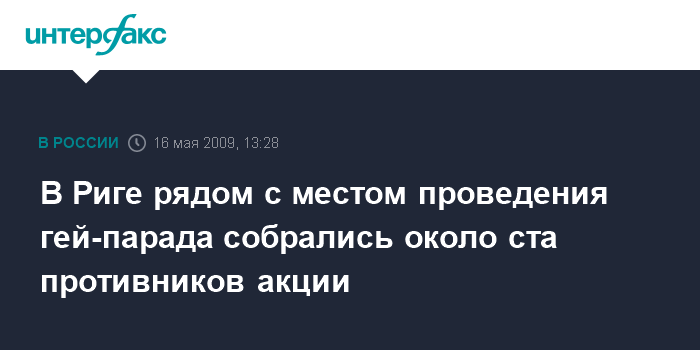 Москва. 16 мая. INTERFAX.RU - Около ста противников Балтийского гей-парада собрались в субботу у здания Рижского окружного суда, расположенного неподалеку от Верманского парка, где состоится парад представителей секс-меньшинств.