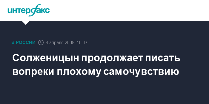Солженицын продолжает писать вопреки плохому самочувствию