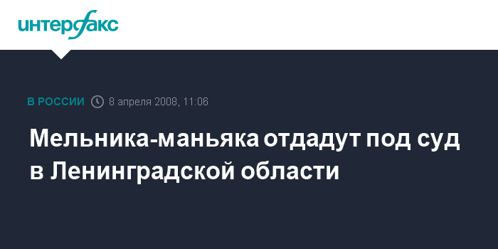 Санкт-Петербург. 8 апреля. INTERFAX.RU - В Ленинградской области закончено расследование дела мельника поселка Мга, обвиняемого в серии изнасилований и убийств.