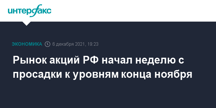 Рынок акций РФ начал неделю с просадки к уровням конца ноября