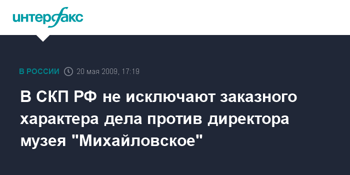 В СКП РФ не исключают заказного характера дела против директора музея "Михайловское"