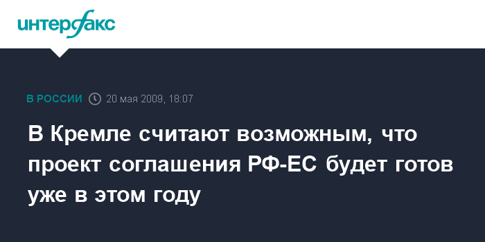Москва. 20 мая. INTERFAX.RU - Проект нового базового соглашения между Россией и ЕС при благоприятном стечении обстоятельств может быть подготовлен до конца текущего года, считает источник в Кремле.