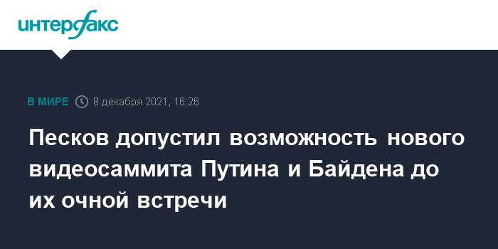 Москва. 8 декабря. INTERFAX.RU - Президенты РФ и США перед очным саммитом могут еще раз пообщаться дистанционно, допустил пресс-секретарь главы российского государства Дмитрий Песков.