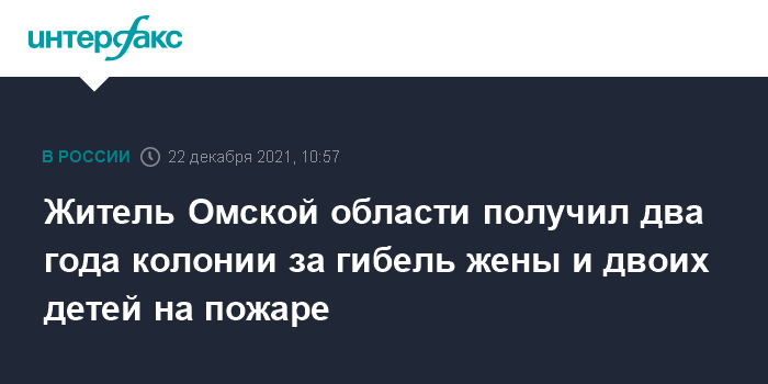 Житель Омской области получил два года колонии за гибель жены и двоих детей на пожаре