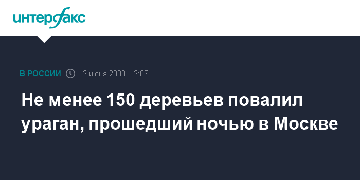 Москва. 12 июня. INTERFAX.RU - В российской столице около 150 деревьев были повалены ураганным ветром вечером в четверг и в ночь на пятницу, сообщил "Интерфаксу" источник в городских структурах.
