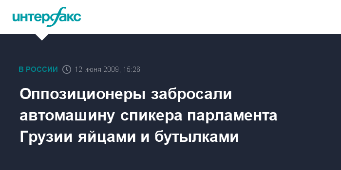 Москва. 12 июня. INTERFAX.RU - Молодые сторонники радикальной оппозиции напали на автомашину председателя парламента Давида Бакрадзе, когда он покидал парламент Грузии.