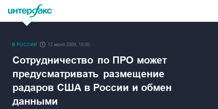 Москва. 12 июня. INTERFAX.RU - США проявляют интерес к сотрудничеству с Россией по противоракетной обороне в отношении угроз, исходящих со стороны третьих стран, заявил в четверг "Интерфаксу" высокопоставленный источник в американской администрации.