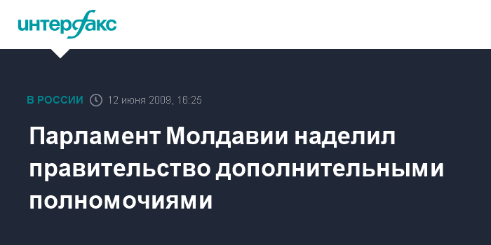 Москва. 12 июня. INTERFAX.RU - Парламент Молдавии предоставил правительству дополнительные полномочия и принял закон о гарантировании банковских вкладов.