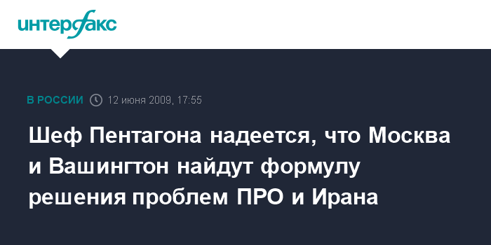 Москва. 12 июня. INTERFAX.RU - Министр обороны США Роберт Гейтс выразил надежду, что Америка и Россия найдут взаимоприемлемые решения проблем международной безопасности, в том числе вопросов ПРО и Ирана.