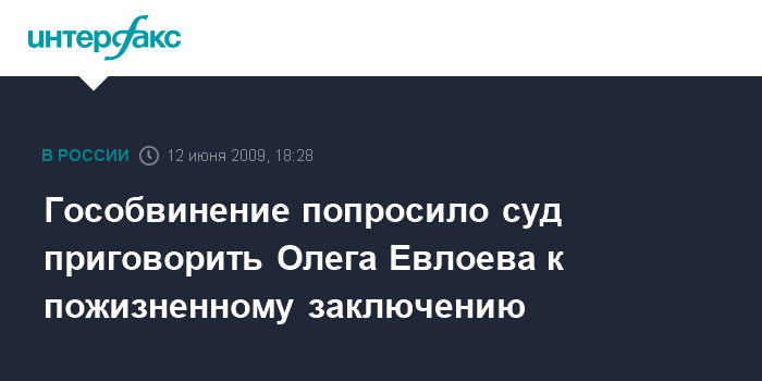 Москва. 12 июня. INTERFAX.RU - Гособвинение на заседании в пятницу попросило суд Астаны признать Олега Евлоева виновным в убийстве семьи столичного предпринимателя и назначить ему наказание в виде пожизненного лишения свободы.