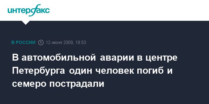 В автомобильной аварии в центре Петербурга один человек погиб и семеро пострадали