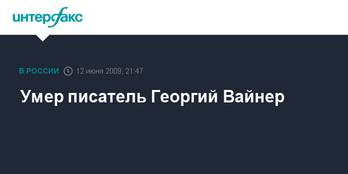 Москва. 12 июня. ИНТЕРФАКС - Известный российский писатель и сценарист Георгий Вайнер скончался в пятницу в больнице Нью-Йорка в возрасте 71 года после тяжелой и продолжительной болезни, сообщает телеканал "Вести".