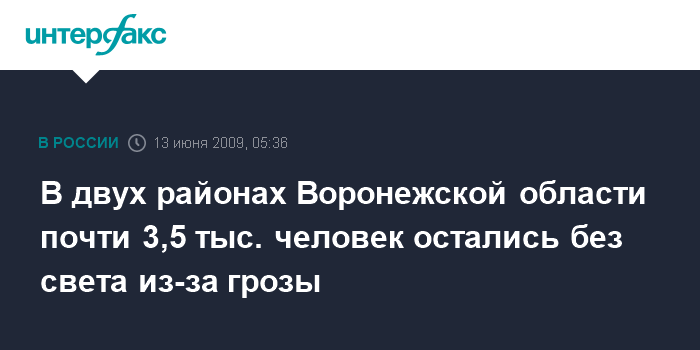 В двух районах Воронежской области почти 3,5 тыс. человек остались без света из-за грозы