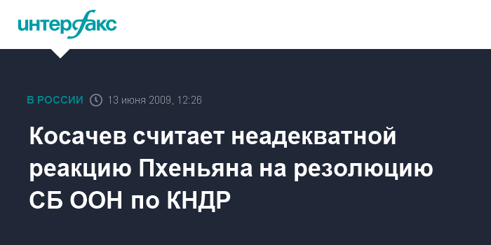 Косачев считает неадекватной реакцию Пхеньяна на резолюцию СБ ООН по КНДР