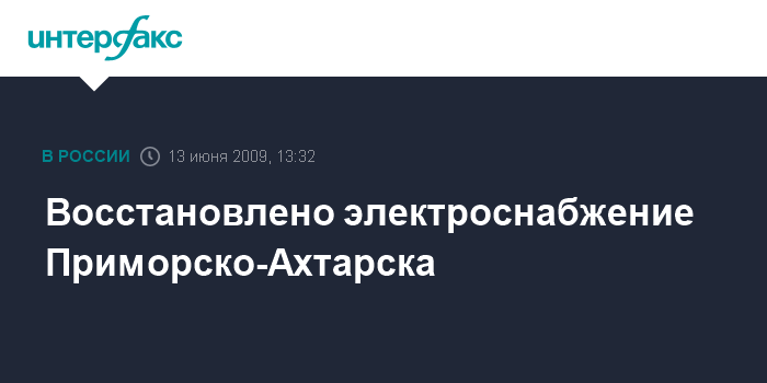Краснодар. 13 июня. INTERFAX.RU - В Приморско-Ахтарске Краснодарского края восстановлено электроснабжение, поврежденное упавшим на ЛЭП самолетом Ан-2, сообщили в субботу "Интерфаксу" в отделе ГО и ЧС райадминистрации.