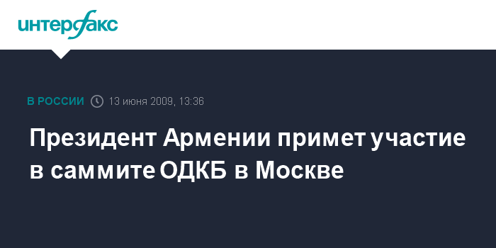 Ереван. 13 июня. INTERFAX.RU - Президент Армении Серж Саргсян 14 июня посетит Москву с однодневным рабочим визитом для участия в очередном заседании Совета коллективной безопасности ОДКБ, сообщили "Интерфаксу" в субботу в пресс-службе главы армянского государства.