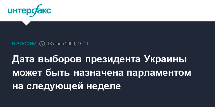 Киев. 13 июня. INTERFAX.RU - Парламент Украины на следующей пленарной неделе должен принять постановление о дате выборов президента страны, заявляет спикер Верховной Рады Владимир Литвин.