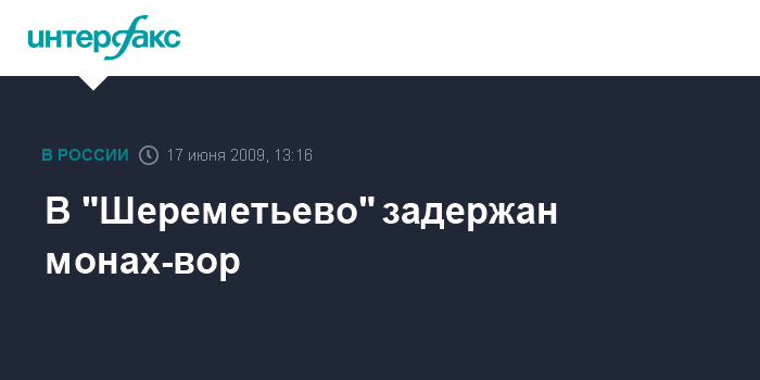 Москва. 17 июня. INTERFAX.RU - В столичном аэропорту "Шереметьево" задержали монаха-иконописца, который находился в федеральном розыске за совершенную им крупную кражу.