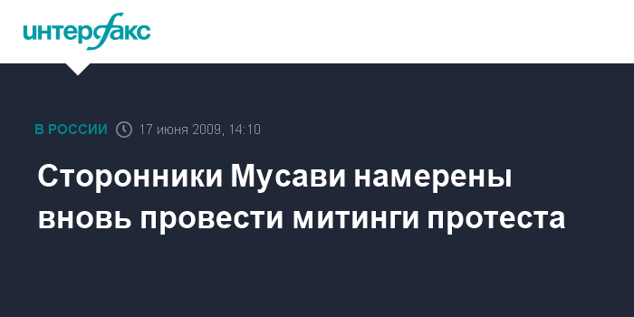 Тегеран. 17 июня. INTERFAX.RU - Сторонники проигравшего на президентских выборах в Иране кандидата от реформаторов Мир-Хосейна Мусави планируют в среду вновь провести митинги в знак протеста против спорной, по их мнению, победы Махмуда Ахмадинежада, сообщает иранская телекомпания "Пресс-ТВ".