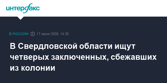 Екатеринбург. 17 июня. INTERFAX.RU - Из колонии-поселения номер 29 в поселке Тормоли Свердловской области сбежали четверо осужденных: Сергей Аладинский, Иван Федоров, Алексей Орлов и Виктор Шушарин.