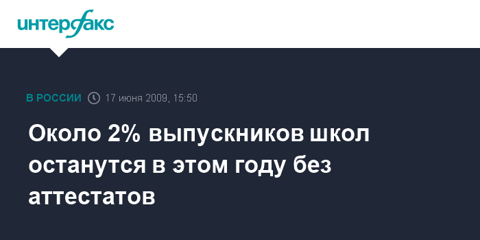 Москва. 17 июня. INTERFAX.RU - Прогнозы критиков ЕГЭ о том, что в 2009 г. огромное число выпускников останется без аттестатов, не оправдались, заявила глава Рособрнадзора Любовь Глебова.