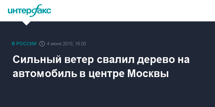 Москва. 4 июня. INTERFAX.RU - Начавшийся в столичном регионе в пятницу днем дождь сопровождается сильным ветром, который валит деревья, сообщают корреспонденты "Интерфакса" из разных районов Москвы и области.