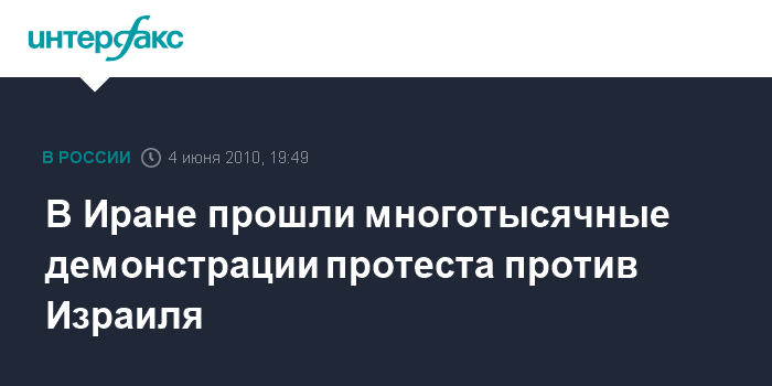 Тегеран. 4 июня. ИНТЕРФАКС - Несколько сотен тысяч иранцев провели акции протеста против Израиля в различных регионах страны в связи с гибелью активистов пропалестинского конвоя, пытавшегося прорвать блокаду Cектора Газа, сообщило в пятницу агентство ЭФЭ.