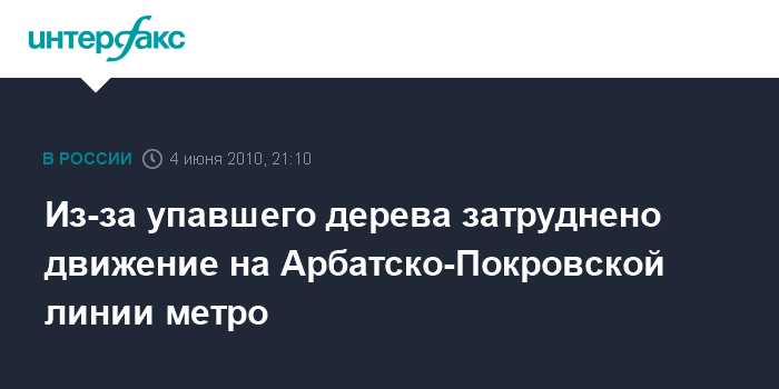 В свою очередь в пресс-службе метрополитена "Интерфаксу" подтвердили, что на наземном участке Арбатско-Покровской линии между станциями "Измайловская" и "Первомайская" в 20:27 на один из путей упало дерево.